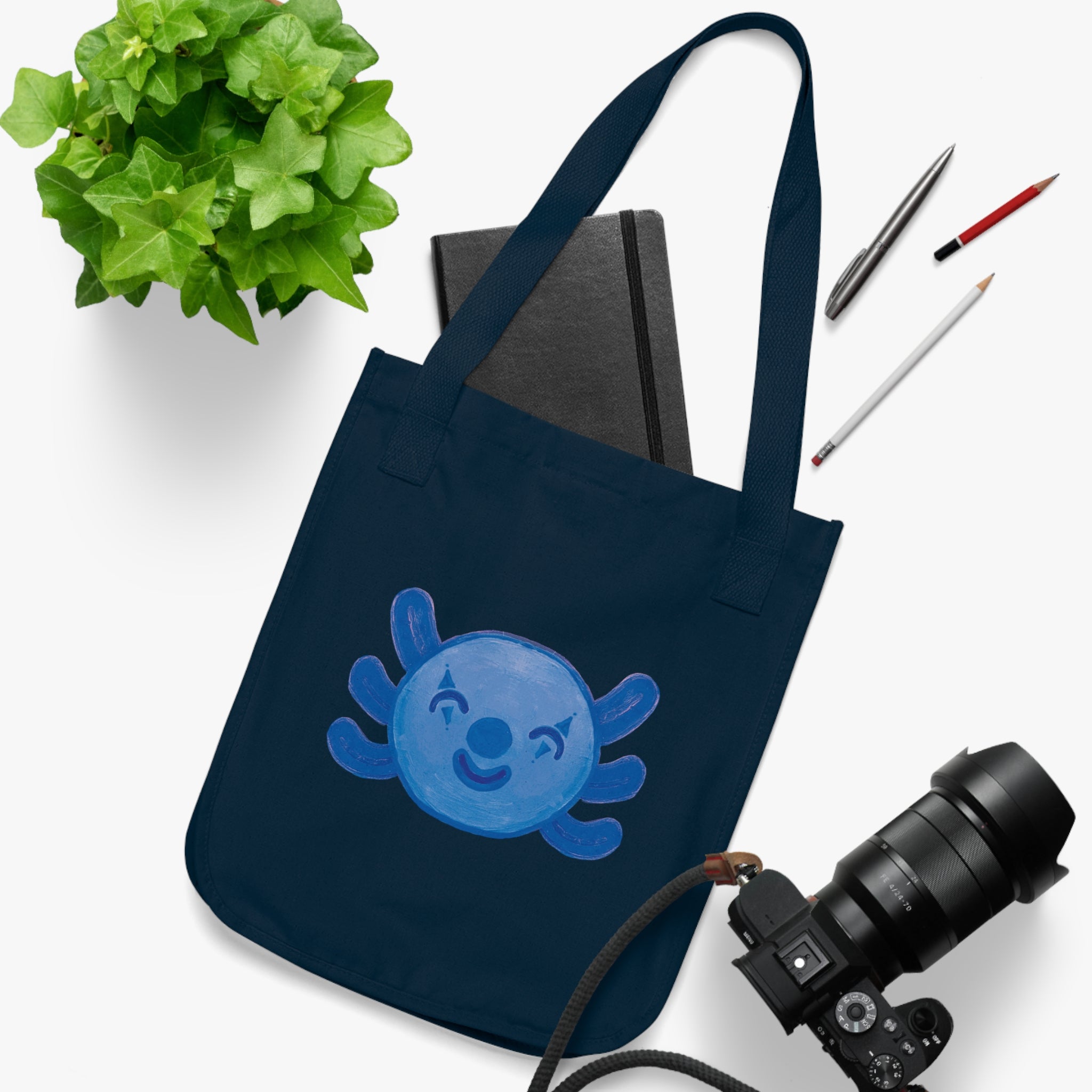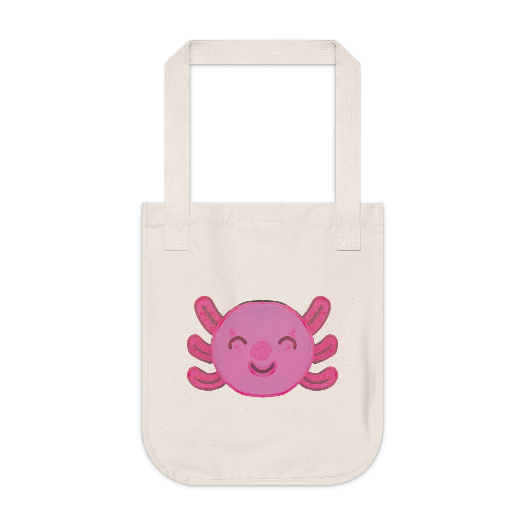 We just love this cute axolotl collaboration with Sammy Gerb who is a full time veterinarian and amateur artist. She fell in love with axolotls when she was a caretaker for her undergraduate school's library aquarium. She found their silly, curious nature captivating, and loved feeding them mealworms. Her love of animals sent her on the path to become a veterinarian, and specialize in exotics and pocket pets. While most of her patients are small and furry, she still has a special place in her heart for these adorable aquatic goofballs. Sammy started painting in 2020 during the pandemic. She started painting as a way to improve her mental health, and with the goal of encouraging others to create art. Her first big project was a giant jenga set for a friend, with each block thoughtfully painted and narrated with a silly story. Her paintings kept coming from there, with her art evolving into more silly and whimsical art and she continues to share stories and words of encouragement. Her signature painting, and her logo, is a balloon animal dog. To date, Sammy has painted dozens of balloon animal dogs, jenga blocks, and silly paintings, all with the intention to make you smile. We thiik she is just fabulous and grateful for her collaboration.Introducing our beautifully designed Organic Canvas Tote Bag, perfect for eco-conscious individuals.